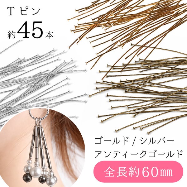 Tピン 60mm 0.7mm 45本入 アクセサリーパーツ ピンパーツ 金具 ビーズパーツ ハンドメイド 手作り ネックレス ピアス イヤリング 材料 基礎金具