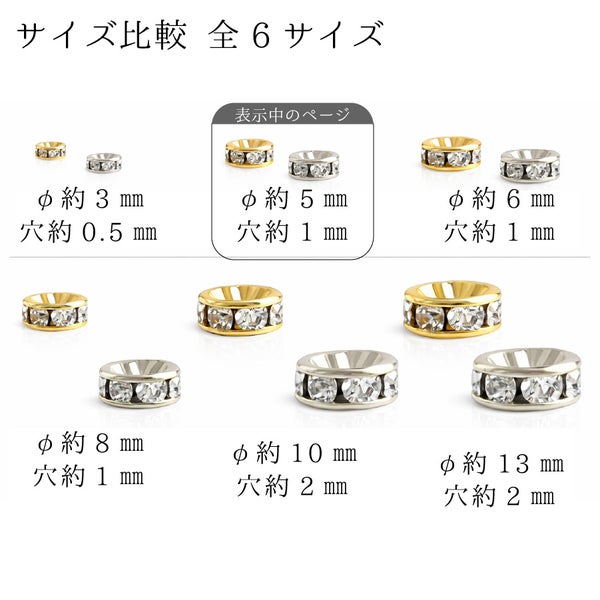 ロンデル 5mm クリスタル 10個入 ゴールド シルバー スペーサー ビーズ アクセサリーパーツ ビーズパーツ ハンドメイド ピアス イヤリング ネックレス 手芸材料 | 手芸材料のネットショップ つくる楽しみ.com