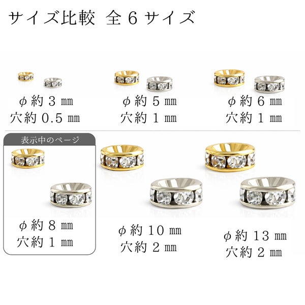 【徳用】 ロンデル 8mm クリスタル 50個入 ゴールド シルバー スペーサー ビーズ アクセサリーパーツ ハンドメイド ネックレス ピアス イヤリング 手芸材料 | 手芸材料のネットショップ つくる楽しみ.com