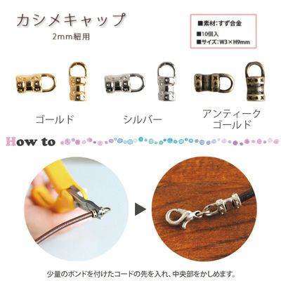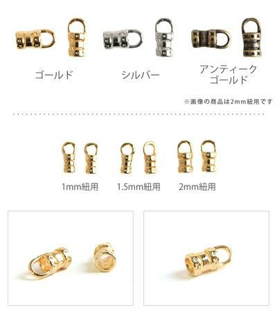 ●革ひもやコードなどの先端を留め具などに繋げるためのパーツです。