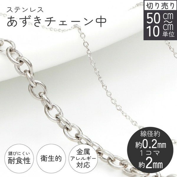 ステンレス あずきチェーン シルバー 線径約0.2mm 1コマ約2mm 50cm以上~10cm単位切り売り アクセサリー パーツ ハンドメイド ピアス イヤリング 通販 ステンレス フリー | 手芸材料のネットショップ つくる楽しみ.com