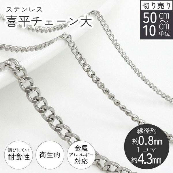 ステンレス 喜平チェーン シルバー 線径約0.8mm 1コマ約4.3mm 50cm以上~10cm単位切り売り アクセサリー パーツ ハンドメイド ピアス イヤリング 通販 ステンレス フリー | 手芸材料のネットショップ つくる楽しみ.com