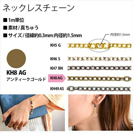 アクセサリー ネックレスチェーン 1m単位 KH8-AG アンティークゴールド| つくる楽しみ ネックレスチェーン | 手芸材料のネットショップ つくる楽しみ.com