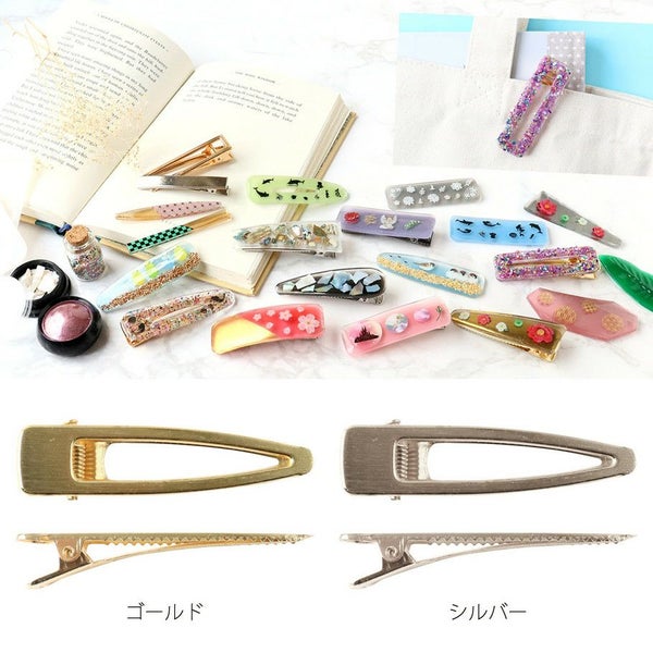 ヘアクリップ カーブなし 先丸 ゴールド シルバー ヘアアクセサリー レジン 土台