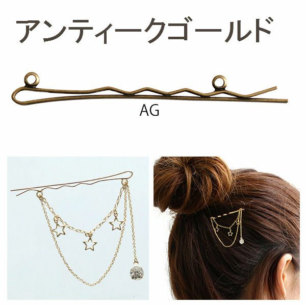 2つカン付ヘアピン 全長53mm 5本入 AG アンティークゴールド KE1208-AG | つくる楽しみ | 手芸材料のネットショップ つくる楽しみ.com