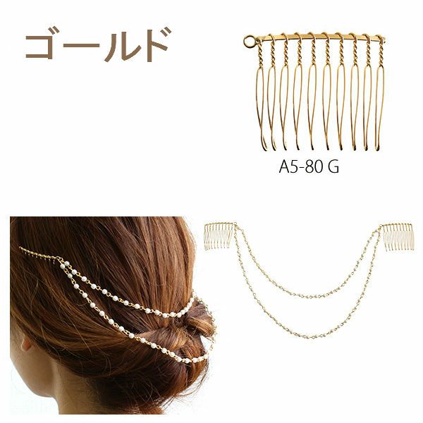 左カン付コーム 10本足 W40×H35mm 2個入 G ゴールド A5-80 | つくる楽しみ