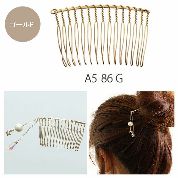 左カン付コーム 15本足 W57×H35mm 2個入 G ゴールド A5-86 | つくる楽しみ | 手芸材料のネットショップ つくる楽しみ.com