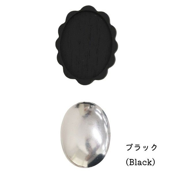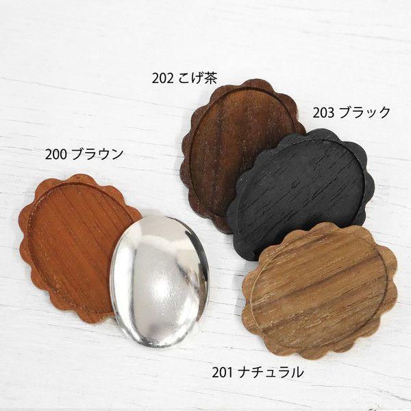 日本紐釦貿易 ウッドブローチ スカラップタイプ H47×W35mm 銅板・ピン付き 1個 ブラック A22-203