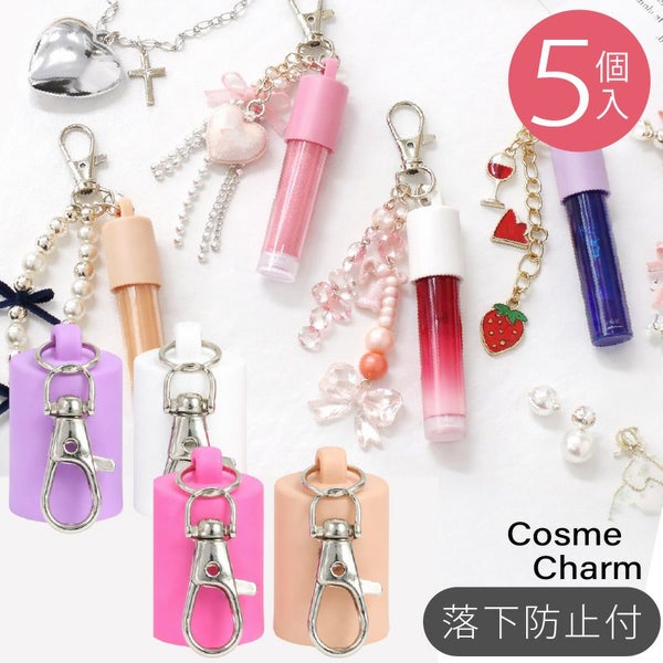 リップキャップ チャーム パーツ 同色5個セット 落下防止付き リップホルダー コスメチャーム キーホルダー デコパーツ H27×W19mm 直径約14mm対応 コスメアクセ | 手芸材料のネットショップ つくる楽しみ.com
