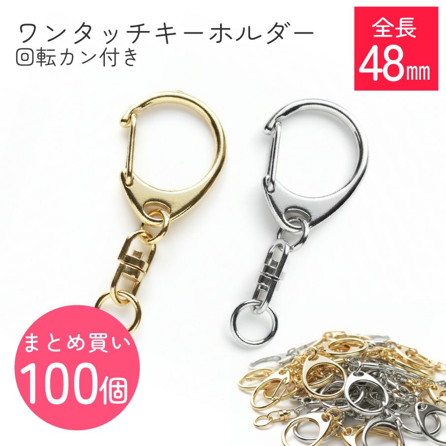 - ワンタッチキーホルダー 回転カン付き 全長4.5cm (超徳用100個入)