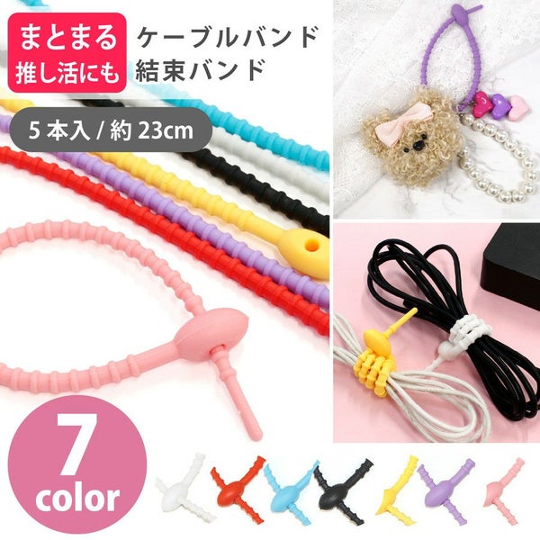 やわらかく伸びるシリコン素材で、イヤホンやスマホの充電ケーブル、家電コードなどをきれいにまとめられる便利なケーブルバンドです。