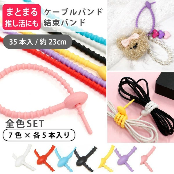 イヤホンやスマホの充電ケーブル、PC周辺コードなど、散らばりやすいケーブル類をスッキリ整理できるシリコン製ケーブルバンドです。