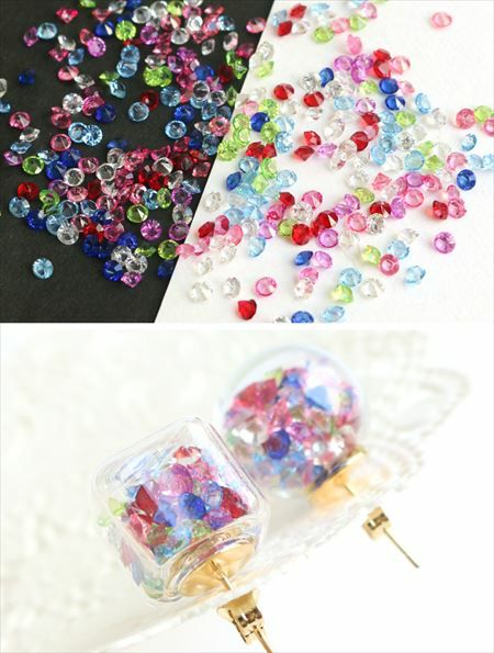 ガラスドームの中に入れて、ピアスやイヤリングに楽しんでいただけるダイヤカット型の無穴ビーズです。