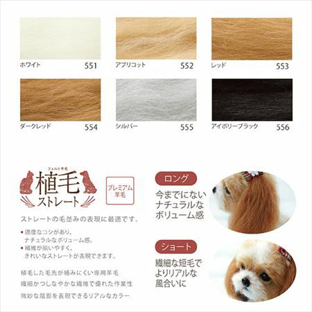 リアル 羊毛フェルト フェルト羊毛 リアル 植毛ストレート ハマナカ