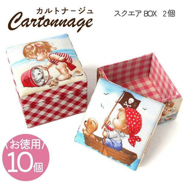 【お徳用 10個入】 カルトナージュキット +レシピ付き スクエアボックス(2個セット) カット済厚紙セット | 手芸材料のネットショップ つくる楽しみ.com