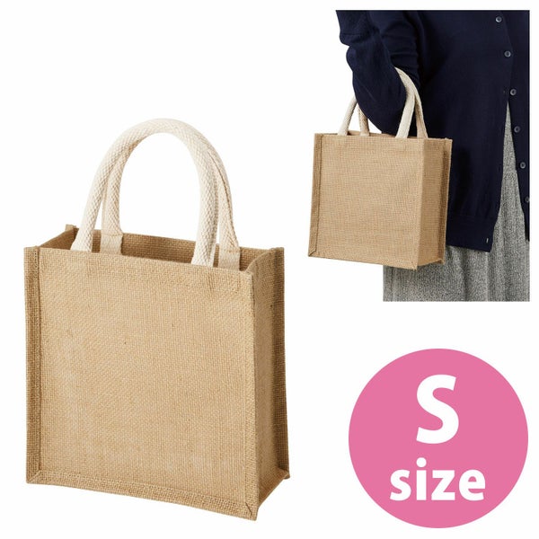 ざっくりとした素材感が魅力。バッグだけでなく、家の収納グッズとしてもインテリアに馴染みます。カジュアルファッションに合うロープのような柔らかいハンドル。ジュートは黄麻を原料としたナチュラルな生地です。黄麻は成長も早く、また光合成も盛んに行う為注目のエコ素材です。