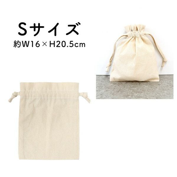 なんでも合わせやすいキナリの巾着なのでリボンやフリルで装飾、消しゴムはんこでスタンプなどアレンジも自由です。