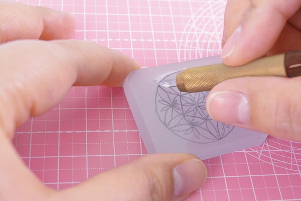 「クリアほるナビ」は、刃先が透けて彫りやすく、彫ったあとで加熱すると透明になるのが特徴です。しかも、丈夫で欠けにくい仕上がりに!