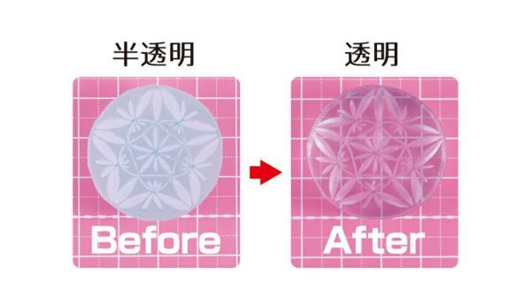 「クリアほるナビ」は、刃先が透けて彫りやすく、彫ったあとで加熱すると透明になるのが特徴です。しかも、丈夫で欠けにくい仕上がりに!