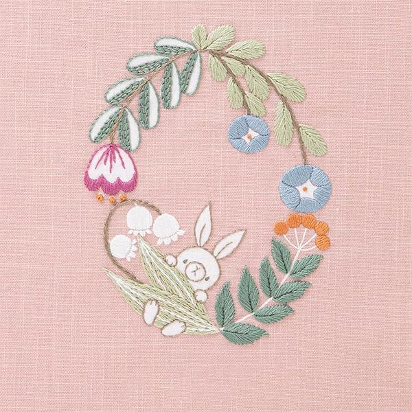 ■キット内容(素材):コスモ25番刺しゅう糸(綿100%)、刺しゅう布No.1700(フリーステッチ用コットンクロス 33.ピンク/綿100%)※図案プリント済み、刺し方説明書