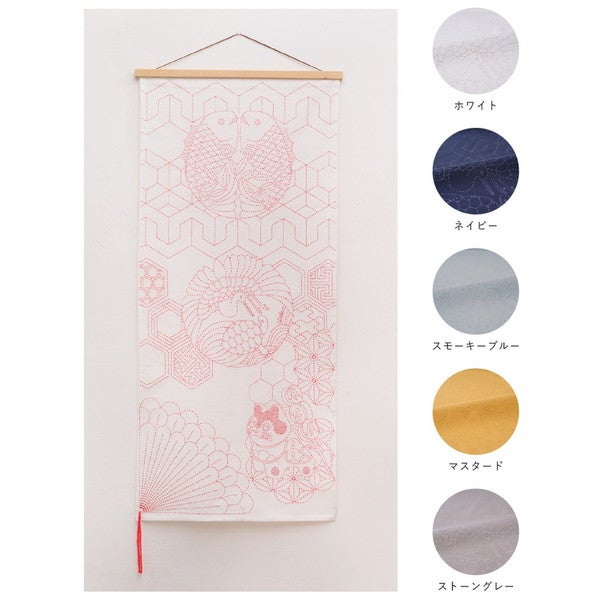 刺し子作家・chiebaa さんによる、手描きのオリジナル図案を再現した「お祝いの刺し子布」。