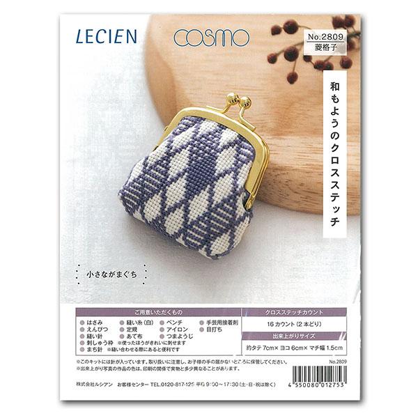 もようのクロスステッチ 刺しゅうキット 小さながま口 菱格子 刺繍キット 刺しゅうキット キット 母の日 プレゼント | 手芸材料のネットショップ つくる楽しみ.com