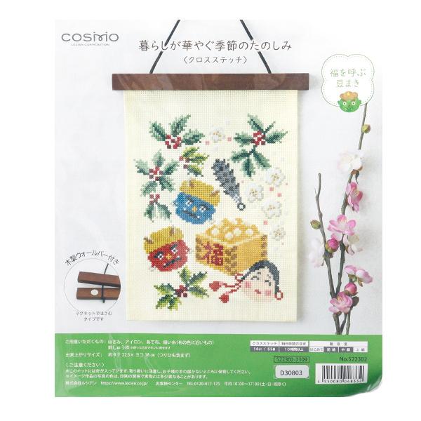 ■キット内容:コスモ25番刺繍糸 ラメ刺しゅう糸 コスモ刺しゅう布(No3900ジャパクロス5) 刺しゅう針 図案付き作り方説明書 木製ウォールバー(天然木、ネオジム磁石を使用) つりひも(牛革)