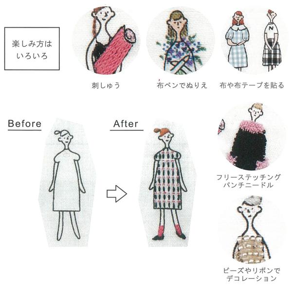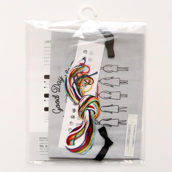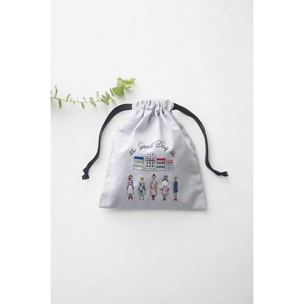 巾着は縫製済みなので、仕立てが要らず、ミシンを使わずに完成できます。刺しゅうしてすぐ使いはじめられるのが嬉しいポイントです。