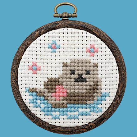 刺しゅうキット クロスステッチ 夏休み ラッコ No.7773 まんまるフレーム 刺しゅう枠付き | 手芸材料のネットショップ つくる楽しみ.com