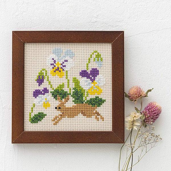 5. わいいどうぶつと季節のお花 クロスステッチキット フレーム付き うさぎとビオラ 刺繍キット 刺しゅうキット キット 母の日 プレゼント