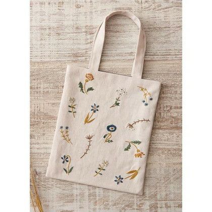 みずみずしい草木や花々をノスタルジックなトーンで表現した刺しゅうキット。図案が布にプリントされているので、