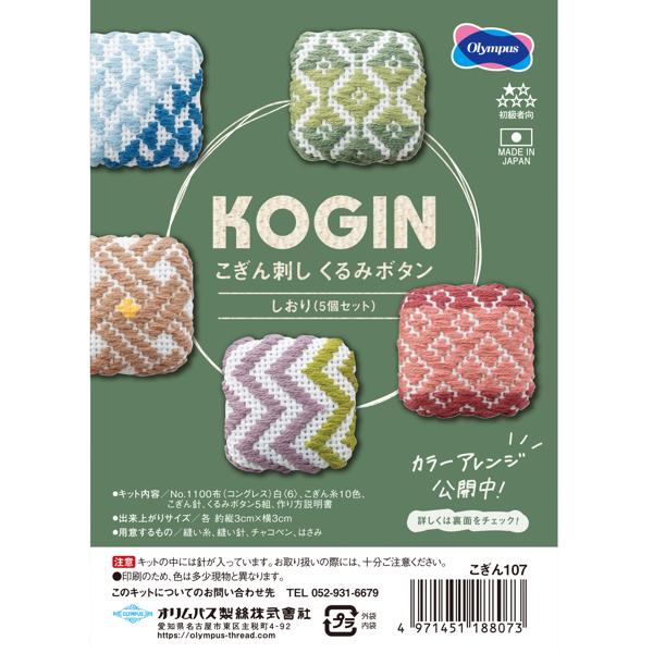 4. オリムパス こぎん刺しくるみボタンキット [しおり] 刺繍キット 刺しゅうキット キット 母の日 プレゼント