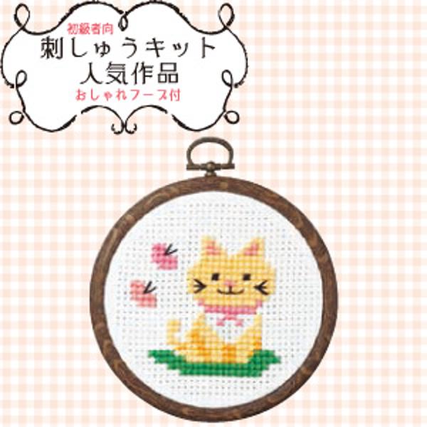 OLY-K7348 初心者向け刺しゅうキット ネコとちょう 刺繍キット 刺しゅうキット キット 母の日 プレゼント
