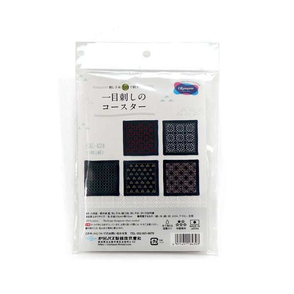 OLY-SK424 刺し子糸 [ 細 ]で刺す 一目刺しのコースター 5枚1組 キット 刺繍キット 刺しゅうキット キット 母の日 プレゼント