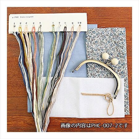 表・裏布各1枚/接着芯1枚/玉付き口金1本/紙ヒモ1本/刺しゅう糸計20色/説明書