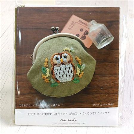 手芸キット Chicchiさんの動物刺しゅうキット がま口 ふくろうさんとミモザ | 手芸材料のネットショップ つくる楽しみ.com