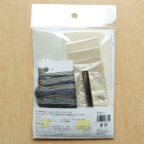 PHC-033-4 piece 刺しゅうキット k.omono fioret hair accessory ヘアクリップ gray PHC-033-4