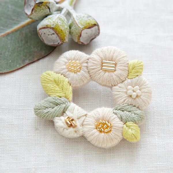 刺しゅうキット k.omono fioret wreah brooch ブローチ -white- 刺繍キット 刺しゅうキット キット 母の日 プレゼント | 手芸材料のネットショップ つくる楽しみ.com