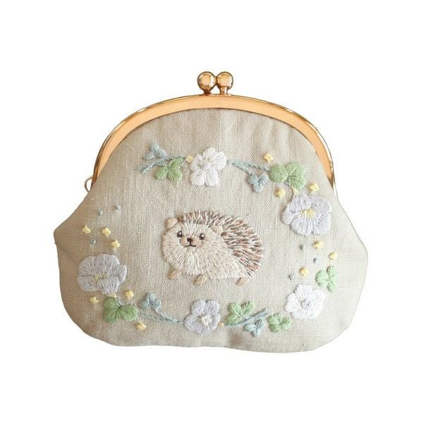 まんまるはりねずみさんと目が合うかわいいがま口です。