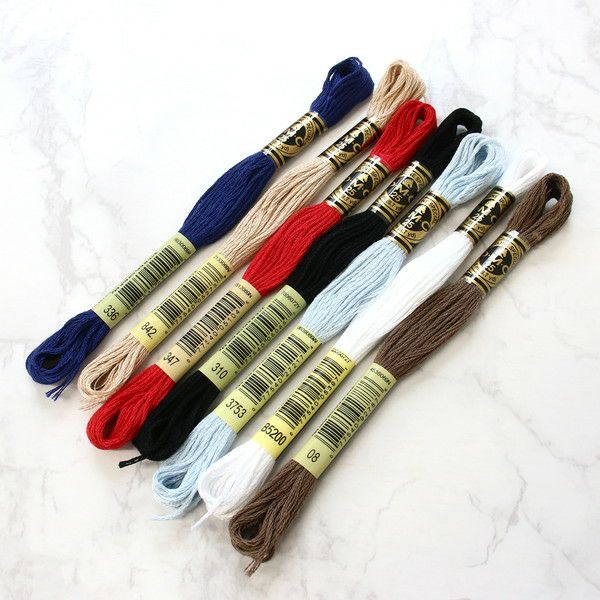 ・使用色のDMC25番糸:B5200 ・3753 ・336 ・842 ・8 ・347 ・310