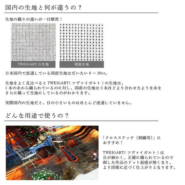 クロスステッチ刺繍が刺しやすく、目を数えやすい生地です。