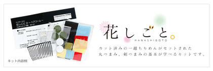 丸つまみの花が3つ付いたコームのアクセサリーが1個作れます。カット済みの一越ちりめんや裏処理用の芯紙がセットされたつまみ細工キット。つまみ細工初心者の方にも始めやすい参考動画が見られるQRコード付き説明書が入っています。