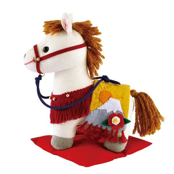 富士山と初日の出、椿の花で馬具を華やかに飾りました。