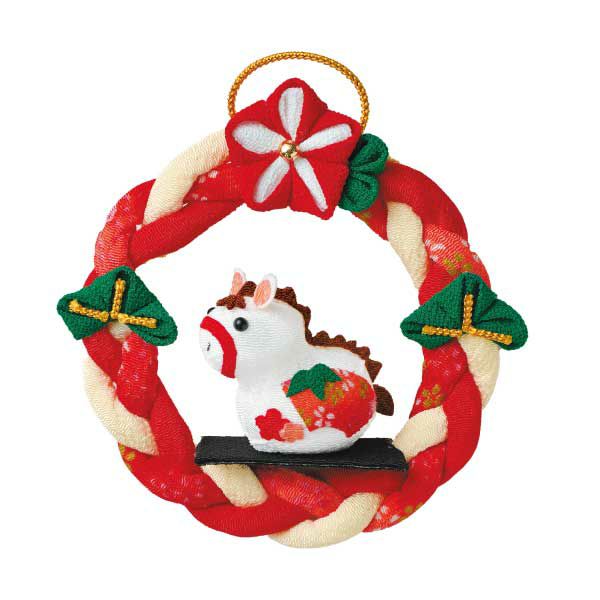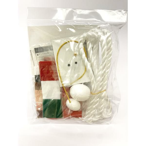 リース用ちりめん、つまみ細工用ちりめん、厚紙、刺し目、金ビーズ、スチロール、ロープ、金紐