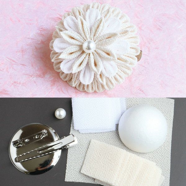 つまみ細工キット 花しごと 26 白ダリアのコサージュクリップ | 手芸材料のネットショップ つくる楽しみ.com