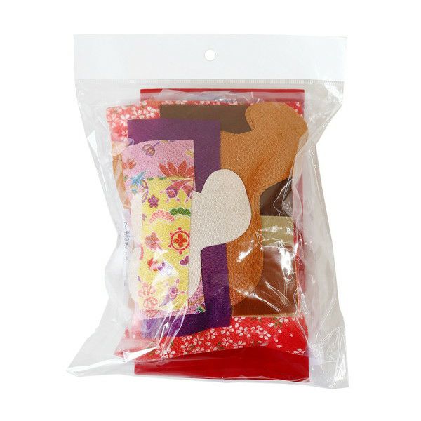 ■セット:ちりめん布地・フェルト・紐・目玉ボタン・小判・綿