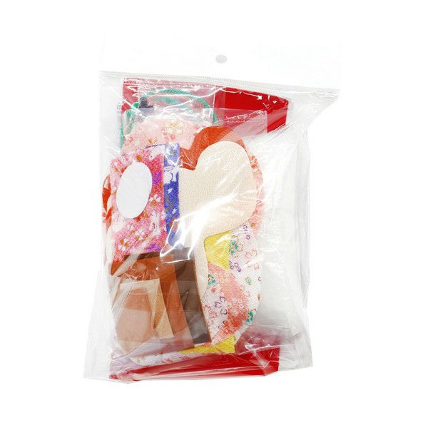 ■セット:ちりめん布地・フェルト・紐・目玉ボタン・綿・ボール紙