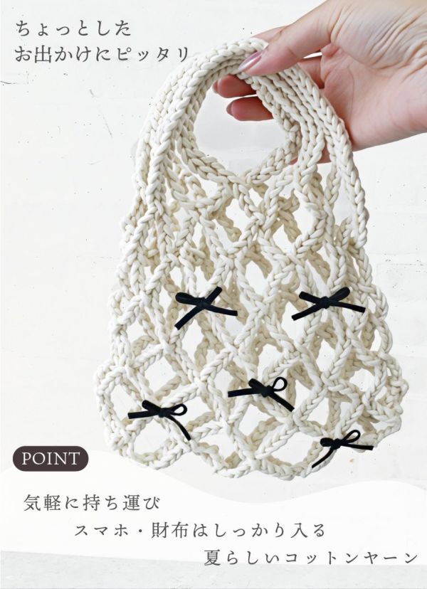 ネットバッグが作れるセット ハンドバッグ 毛糸1玉で作れる 毛糸+パーツ レシピ付き