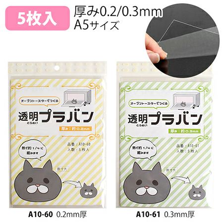 A10-60-61 オーブントースターでつくる 透明プラバン 厚み0.2mm / 0.3mm5枚入| つくる楽しみ クラフト