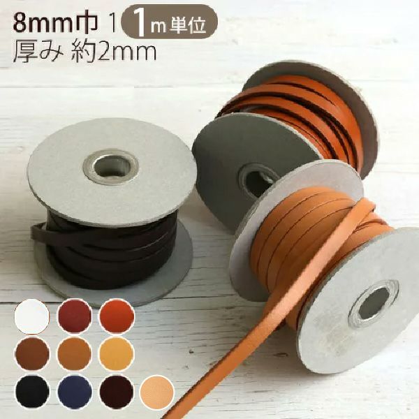 ヌメ革 テープ ( 本革 テープ ) 厚み約2mm 巾8mm 【1m単位の切り売り販売】 | 手芸材料のネットショップ つくる楽しみ.com